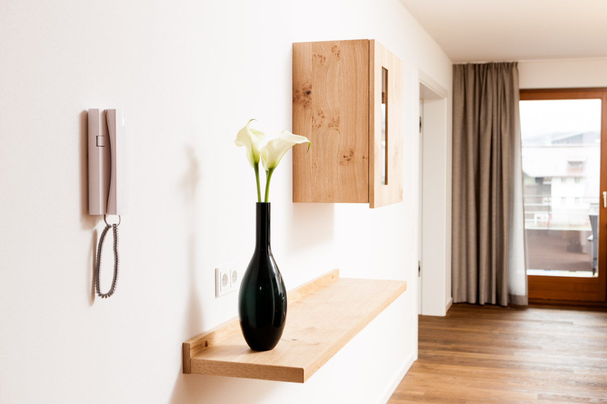 Interior photography at Valschena Apartments in Brand/Vorarlberg. Graphic Design by Julian Hagen Gestaltungen
