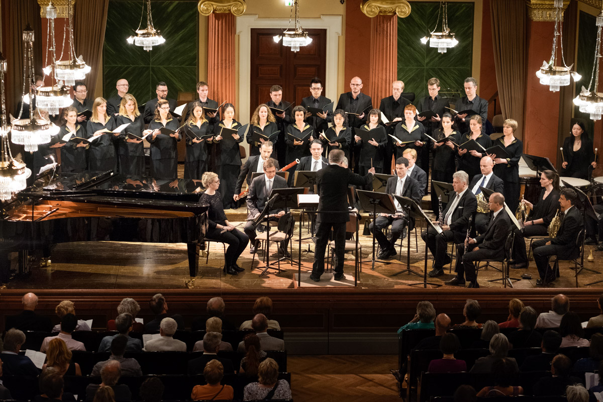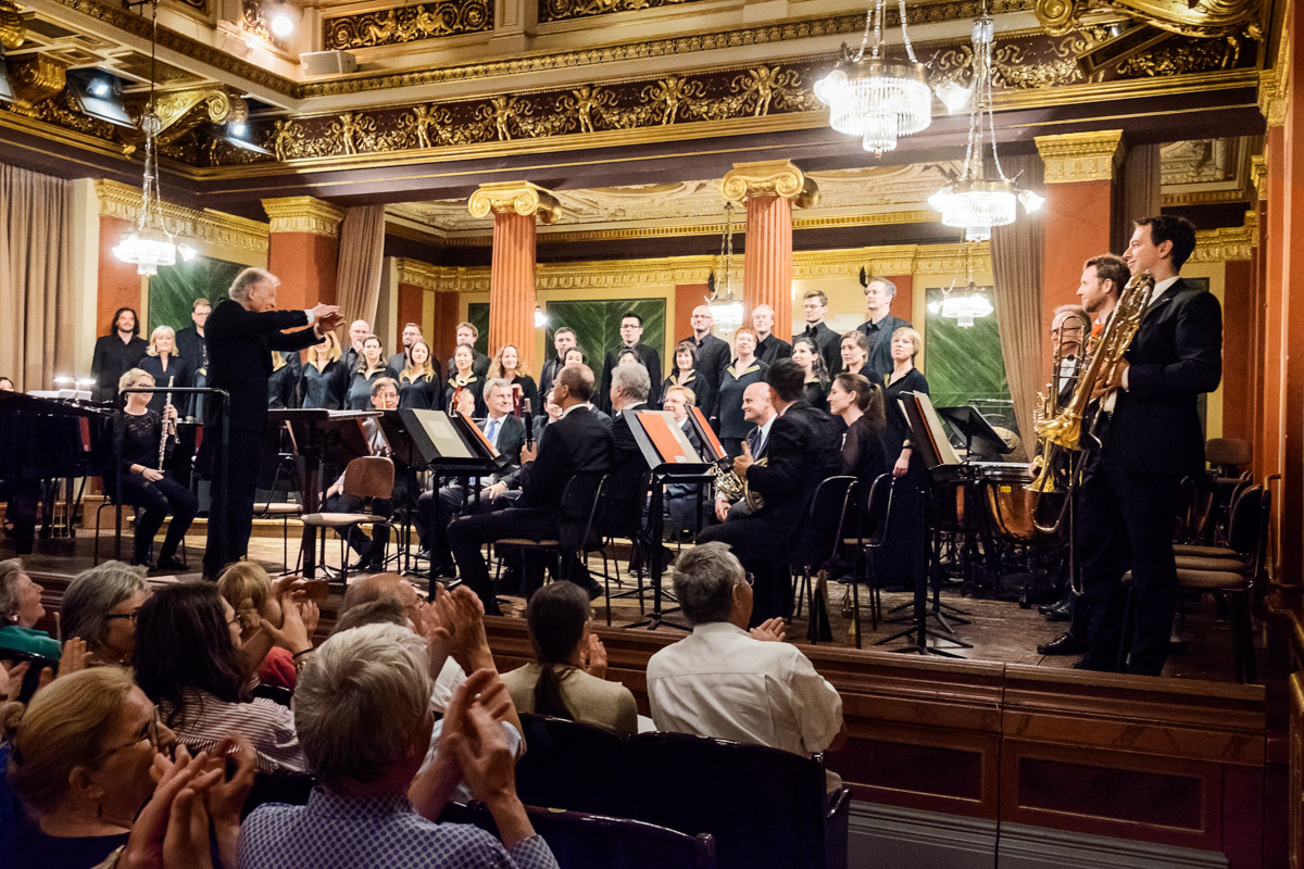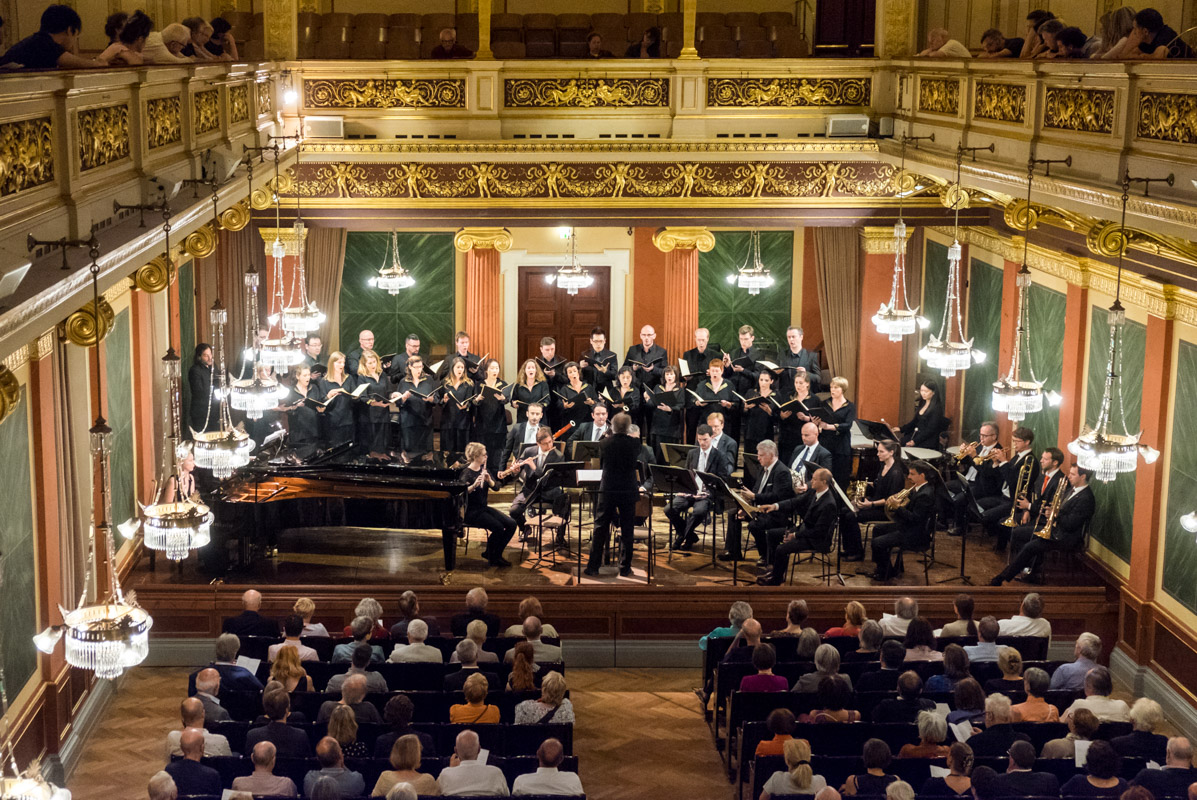 Konzert vom Ensemble Kontrapunkte gemeinsam mit dem Arnold Schoenberg Chor im Wiener Musikvereinssaal.
